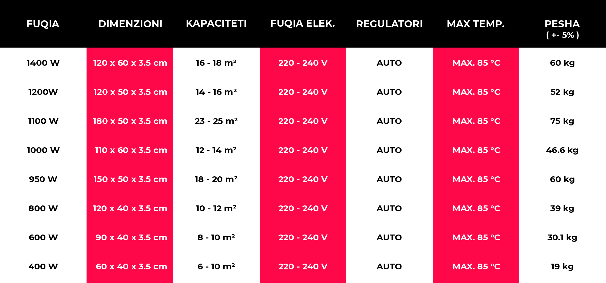 Radiatorë Pse radiatorët tanë? Më poshtë janë disa prej arsyeve se përse duhet të zëvendësoni menyrën e ngrohjes të ambientit tuaj. Kualitet i garantuar Çmimet më të lira Teknologji e avancuar Kursime në energji Nuk dëmton shëndetin 5 vite garancion Ekologjik ANTIQUE WOOD WOOD CUBE PARQUET WOOD BOARD VENUS TRAVERTINO BLANC GOLD LAVA WHITE EMBER WHITE MARBLE BRUSHED GOLD OBSIDIAN GOLD BLACK EMBER BLACK TRAVERTINO WHITE TRAVERTINO ZENITH NOIR